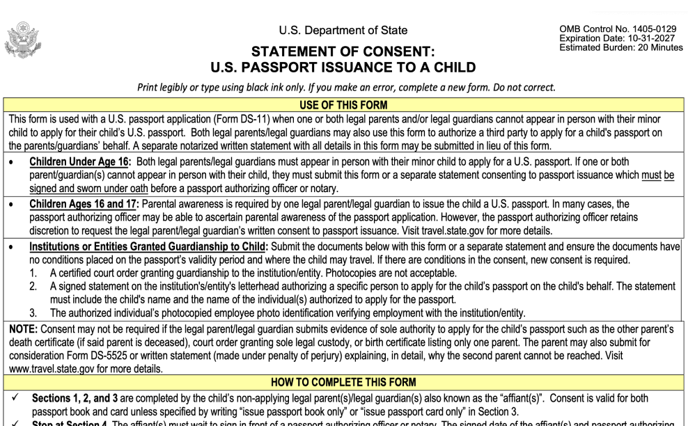 This form’s official name is Statement of Consent or Special Circumstance for Minor Passport. The DS-3053 form is for situations where only one parent or guardian is able to fill out the paperwork.